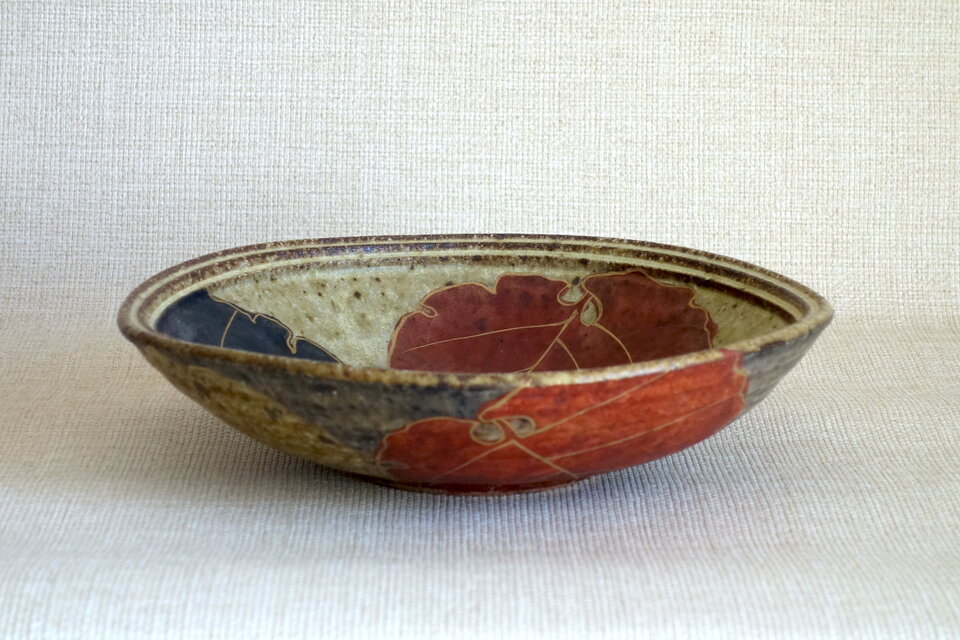 温かい質感の華やかな色の器です。