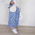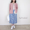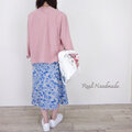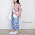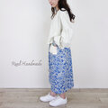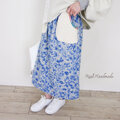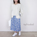 インクブルー・ボタニカルフラワーとワッフルポケットのスカート│お花見 ドライブ お出かけ 旅行