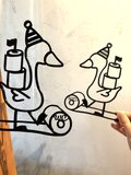 アヒルさんが、トイレットペーパーをトイレまで運んでます。