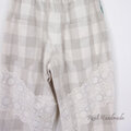 美しい輸入ケミカルレースを後ろに飾り、大人のリラックスパンツを製作しました。