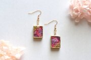レジンアート 長方形のピアス〈罌粟の花の罪〉