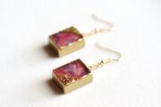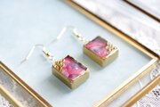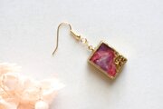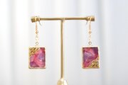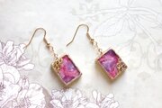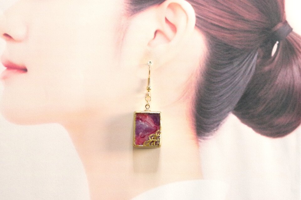 ピンクと紫が滲みあうレジンを金色で縁取り、青海波模様を描いた、小さな玉手箱のようなピアス。