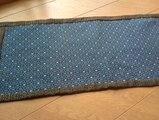 古い古い紬に 藍の型染で葉っぱ、花は黄色の絹