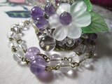 アメジスト8mm、10mm 水晶6㎜8㎜、10mm トップ部分直径約4cm、アクリル、合金素材 長さ約42㎝(アジャスター5cm)