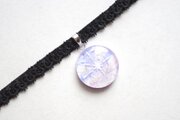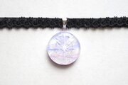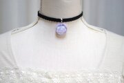 明け方の紫色の雲と昇る朝日の光線を描きこんだレジンを、ベルベットリボンにタティングレースで装飾を施したチョーカーに仕上げました。