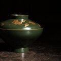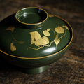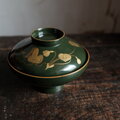 蓮の葉と垂纓 ◆緑で素敵。時代物 漆芸蒔絵蓋付椀 古漆器 骨董・antiques 古道具 大正〜昭和初期 i2