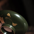 暗めの緑なボディの上に高級感のある蒔絵での絵付け