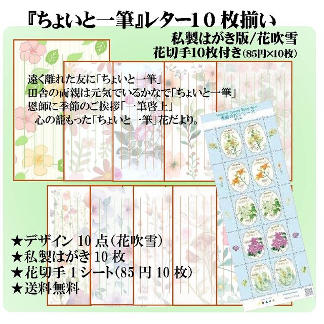 ★「レター10枚」セット/私製はがき・花吹雪/花切手1シート付