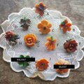 パンジー、薔薇、すみれ、リンゴの花、勿忘草、4つ葉のクローバーなど