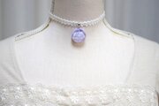 【受注製作】レジンアート ラウンドモチーフとタティングレースとサテンリボンのチョーカー〈紫雲①〉25㎜