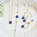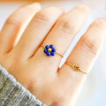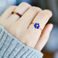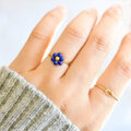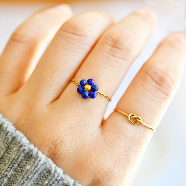 夜空の花 ラピスラズリ フラワー チェーンリング|サイズ調整可能|華奢 ゴールド 天然石リング