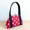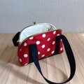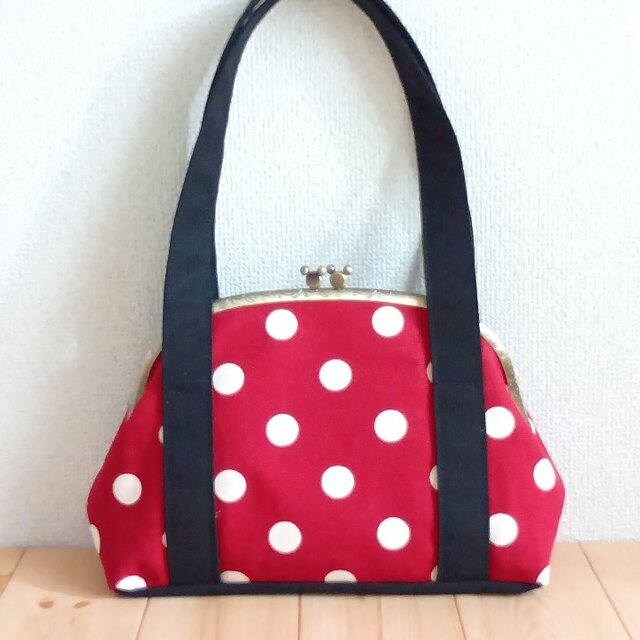 長財布も入る大きめサイズ ドット帆布のがま口ショルダーバッグ 肩掛け 25cm口金 レッド 670