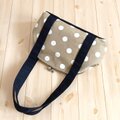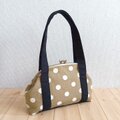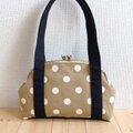 長財布も入る大きめサイズ ドット帆布のがま口ショルダーバッグ 肩掛け 25cm口金 ベージュ 668