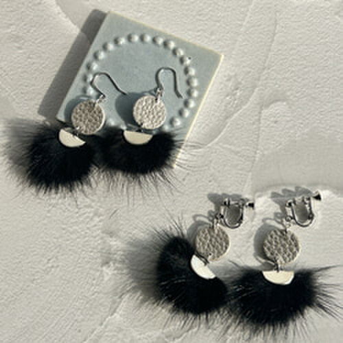 このピアスは、柔らかいミンクファーの贅沢な触感と本革の洗練された質感が見事に調和し、独自の存在感を放ちます。