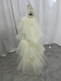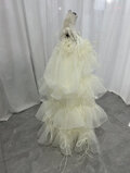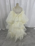 オーバードレス+もこもこドレス 薄シャンパンの色 キャミソール ラッフルフリル 背中見せ ふわふわドレス 披露宴