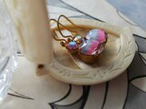 ヴィンテージ Pink/GreyギヴレGlassとPeachオーロラGlassのピアス(イヤリング)
