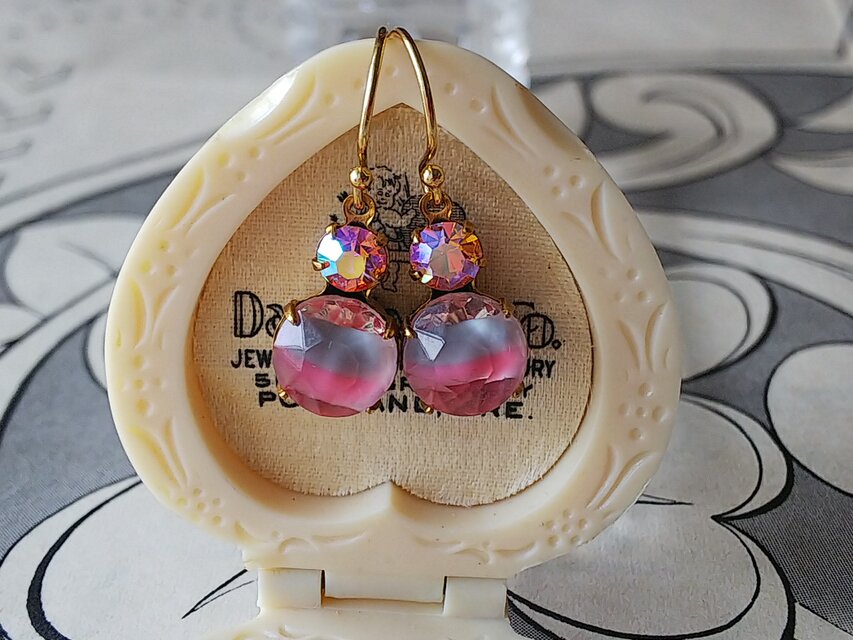 1960年代頃GermanヴィンテージのギヴレGlassとオーストリアヴィンテージのオーロラGlassのピアス(またはイヤリング)です。