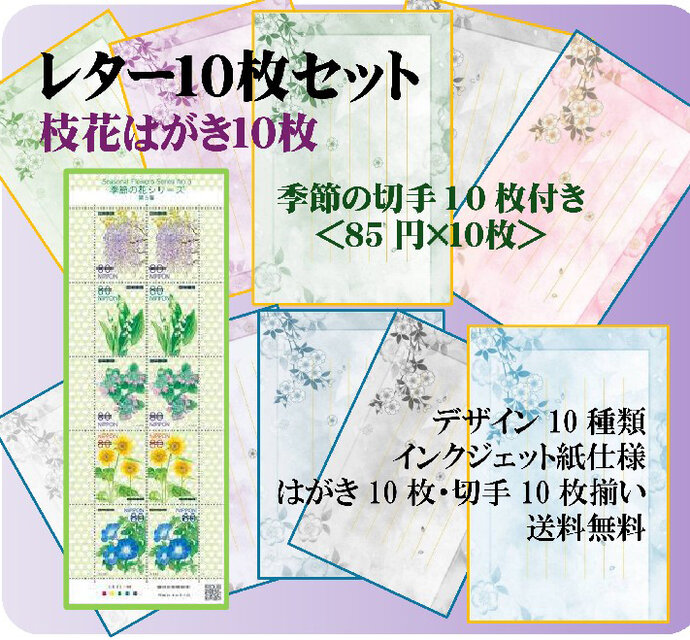 ★「レター10枚」セット/私製はがき・枝花びら/花切手1シート付