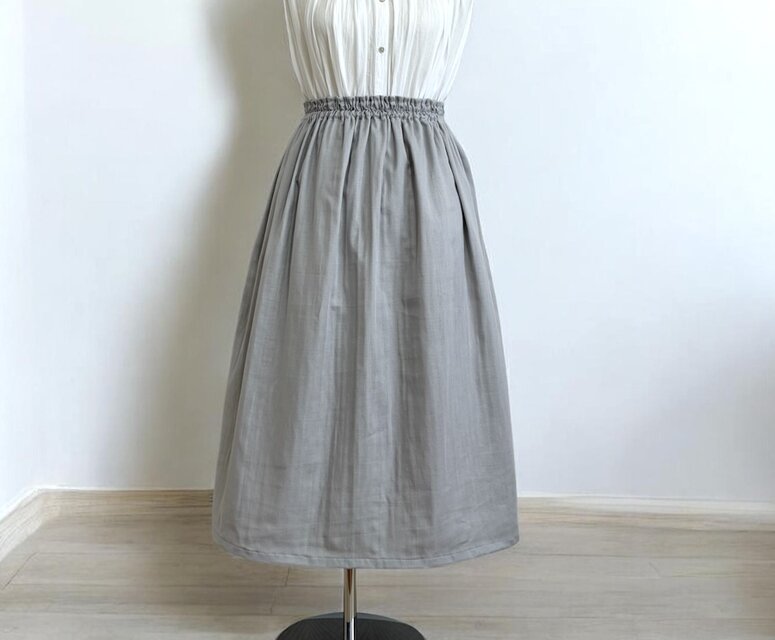 オーガニックWガーゼ◇シルバーグレー◇ギャザースカート◇釜もみ仕立てでふっくら