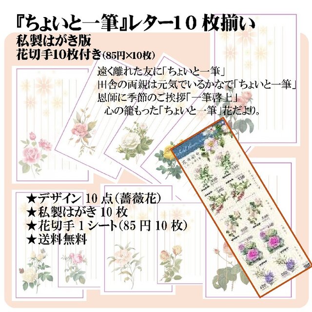 ★「レター10枚」セット/私製はがき・薔薇/花切手1シート付