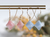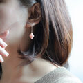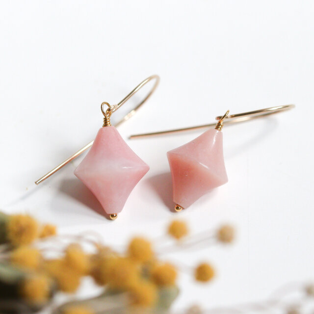 【大人のパステルピンク】陶器のような質感のピンクオパール|天然石ピアス|14kgf