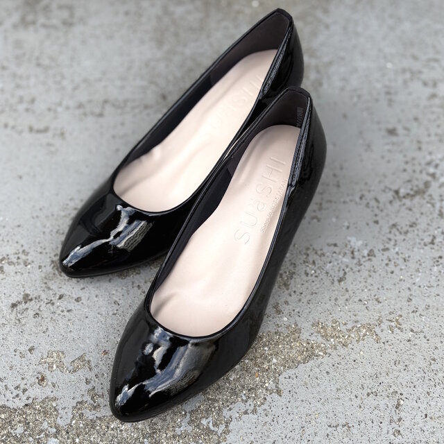 23.0cmのみ エナメルブラック 5.5cmベーシックパンプス ふわふわインソール