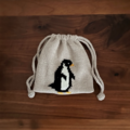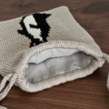 ペンギンの手編み巾着/コットン