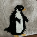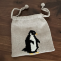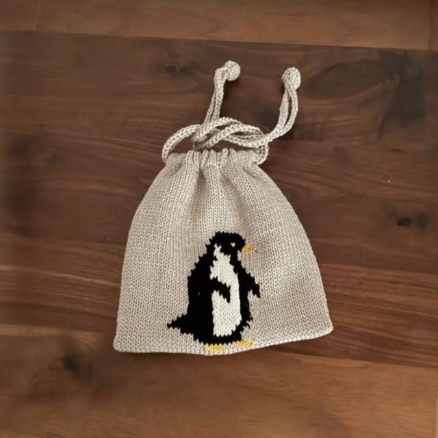 インド綿にシルケット加工を施したコットン糸を使用し、ペンギンを編み込んだ巾着です。