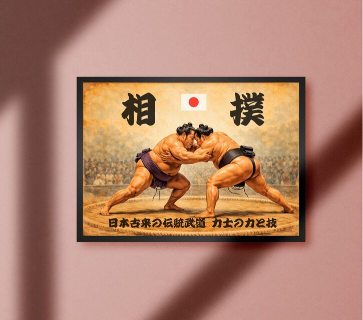 【額付※オーダー無料】 相撲 土俵 力士 取組み 日本伝統武道 ビンテージアート ウォールアート インテリア A4アートポスター