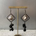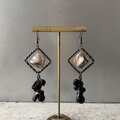 Vintage 90s-00s USA retro shell×black beads long pierce