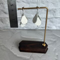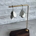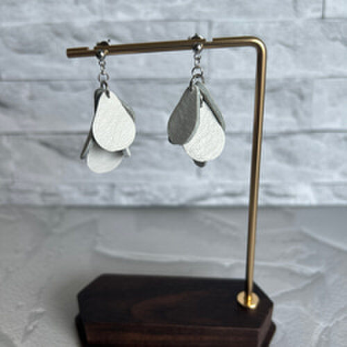 純白の雫が耳元で優雅に揺れる、本革製のモチーフピアス。