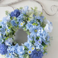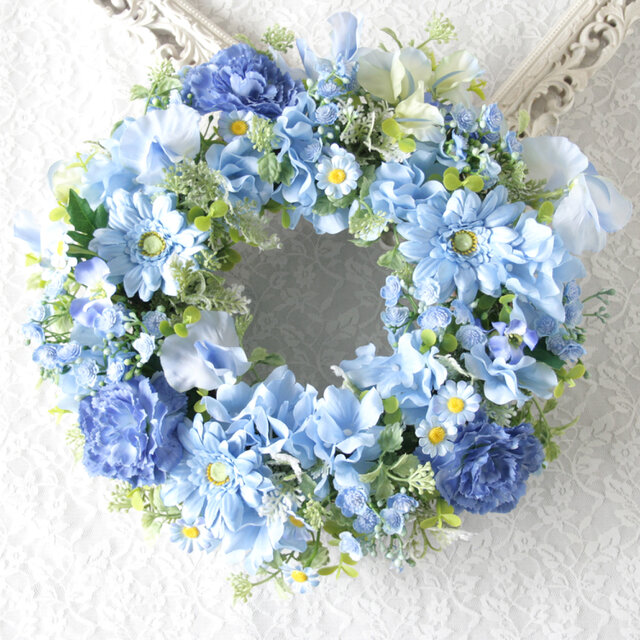 フラワーリース リース ブルーリース ナチュラルリース アーティフィシャルフラワー 造花リース ブルーグラデーション 青いリース スイトピー かすみ草 デージー ナチュラルインテリア 北欧インテリア 上品な暮らし ギフト プレゼント 新築祝い 誕生日プレゼント 春インテリア