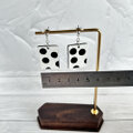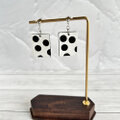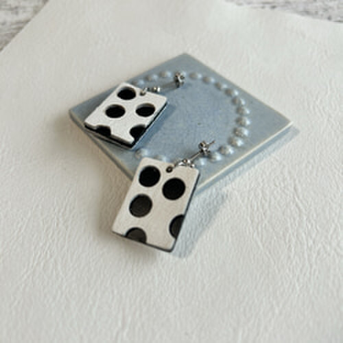 シンプルな美しさとユニークなデザインが融合した「モノクロのエレガンス:本革水玉ピアス」。