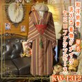 【 単衣着物リメイク セミロングワンピース/ドレス/洗える化繊 帯サッシュベルト 栗色の階層 × 多彩のストリーム KW-1312】