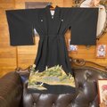 黒留袖 着物 リメイク ワンピース ドレス 和洋折衷 洗える 化繊 漆黒の宇宙 × 松に飛翔する鶴のパルス TKW-127