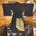 【 黒留袖 着物 リメイク ワンピース ドレス 和洋折衷 洗える 化繊 ハンドメイド レトロ 古着 漆黒の宇宙 × 松に飛翔する鶴のパルス TKW-127】