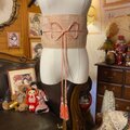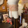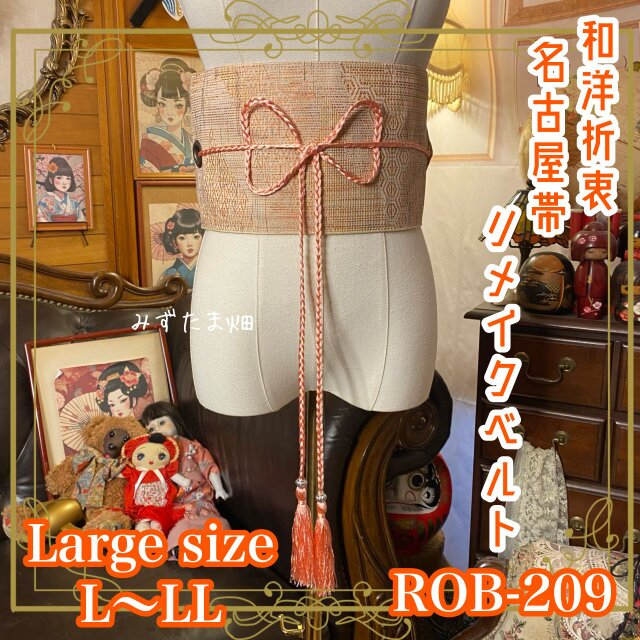 名古屋帯 リメイク サッシュベルト 飾り帯 和洋折衷 ハンドメイド レトロ 古着 L〜LL対応 砂色の幾何学 ROB-209
