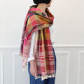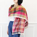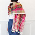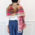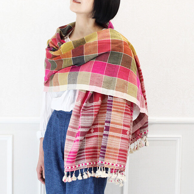 存在感抜群のカラフルなチェックにカッチ特有の織り柄や、裾のタッセルが映えるシンプルながらも洗練されたデザイン。