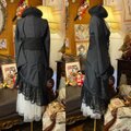 透け感が美しい黒の夏着物をリメイク。裾のブラックレースが情報の余白を美しく揺らし、ガウンとして纏えば歩くたびにドラマチックな残像を遺します。