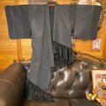 【夏着物 2way ガウン 羽織り ドレス ワンピース ハンドメイド 和洋折衷 洗える 化繊 リメイク 帯サッシュベルト レトロ 古着 黒のシアー KD-107】