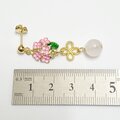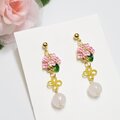 【ローズクォーツと可愛い花チャームの天然石ピアス】