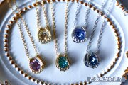 約8mmサイズのオーストリアS社のクリスタルガラスをはさみ、ネックレスに仕立てました。