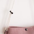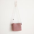 桜と茜を混ぜて煮出し、ピンクに染めたリネン生地でポシェットをつくりました。