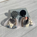 このピアスは、黒を基調としたシックなデザインに、インド刺繡リボンの華やかな花柄を組み合わせた大人の女性にぴったりの一品です。