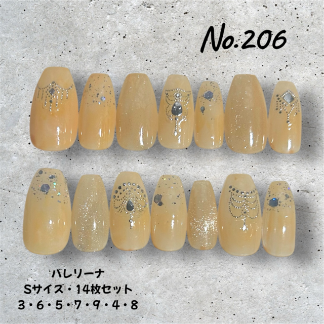 【現品No.206】イエロー×ラメシールネイル 上品大人ネイル バレリーナ Sサイズ ジェルネイルチップ