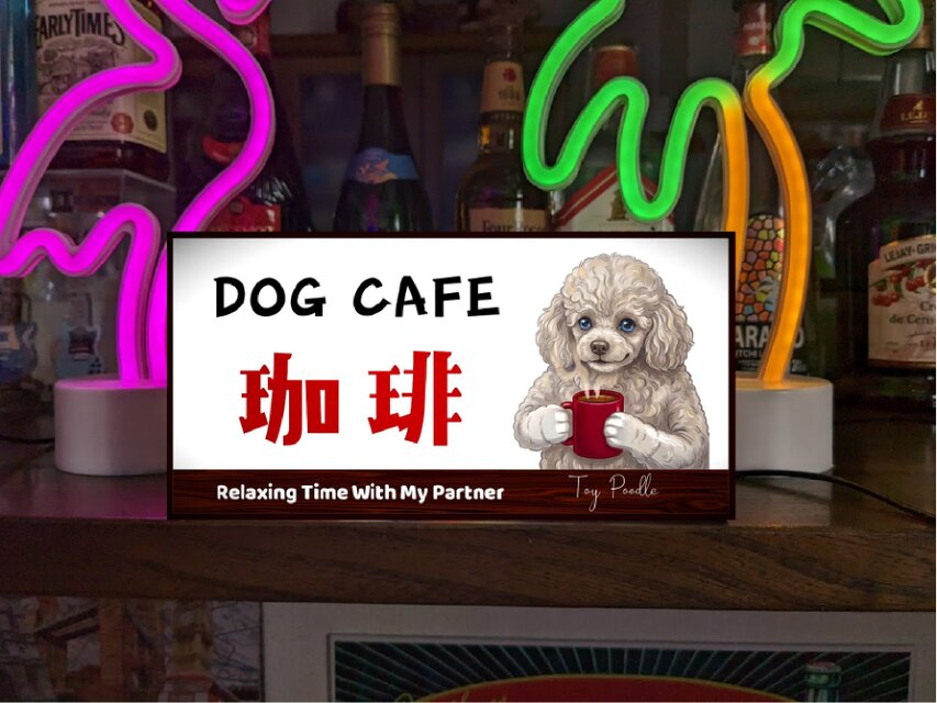 【犬種変更 似顔絵 無料】犬 いぬ イヌ 喫茶 ドッグカフェ コーヒー 珈琲店 ミニチュア 看板 置物 雑貨 ライトBOX