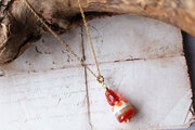 ガラスで作ったミニチュア苺ケーキをネックレスにしました!