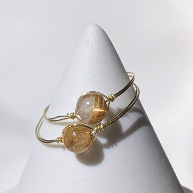 18KGP| お守りリング ルチルクォーツ 天然石 指輪 アレルギー対応 フリーサイズ ゴールド ピンキーリング