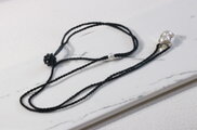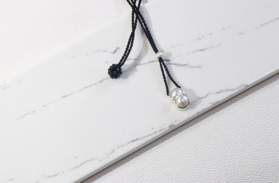 アネモネカラー・天然石と絹のネックレスパールの位置によって、長さはもちろんトップの形を変えられるのがユニークで変化が楽しめて嬉しいです。 以前ネックレスを落としてしまったことがあるので、被り式のネックレスは安心して身につけられて助かります。 ネック部分やタッセルがシルクで、汗ばむ季節にも肌あたりが柔らかそうで嬉しいです。トップに合わせたタッセルの色合いも好きです。 素敵な作品をありがとうございました!