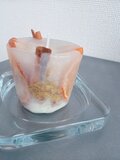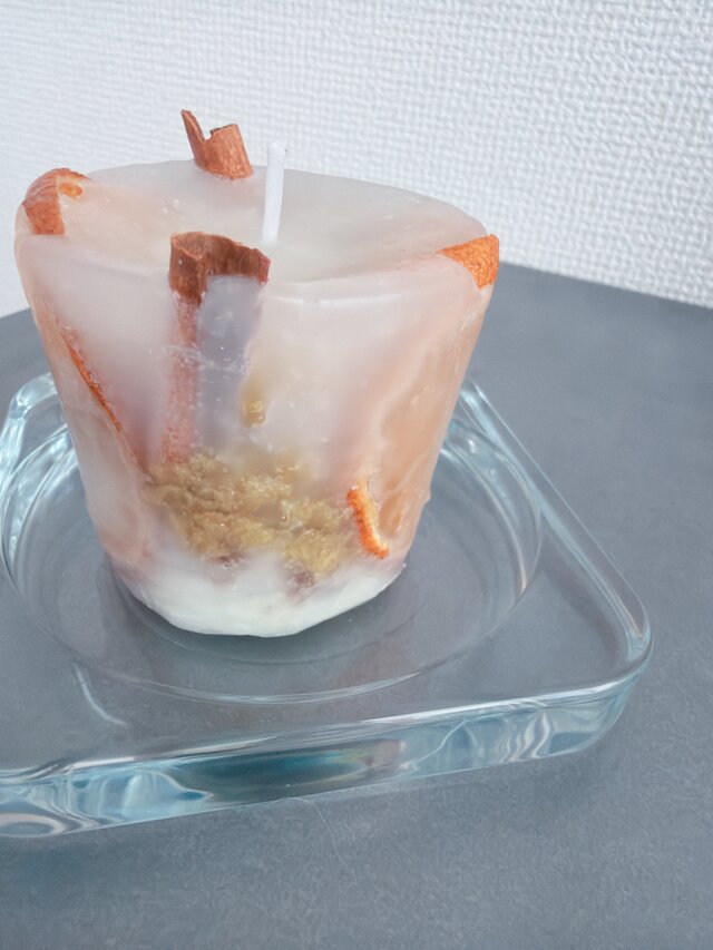 沖縄のタンカンをドライにしシナモンスティックやドライフラワーを使いキャンドルを製作しました。
